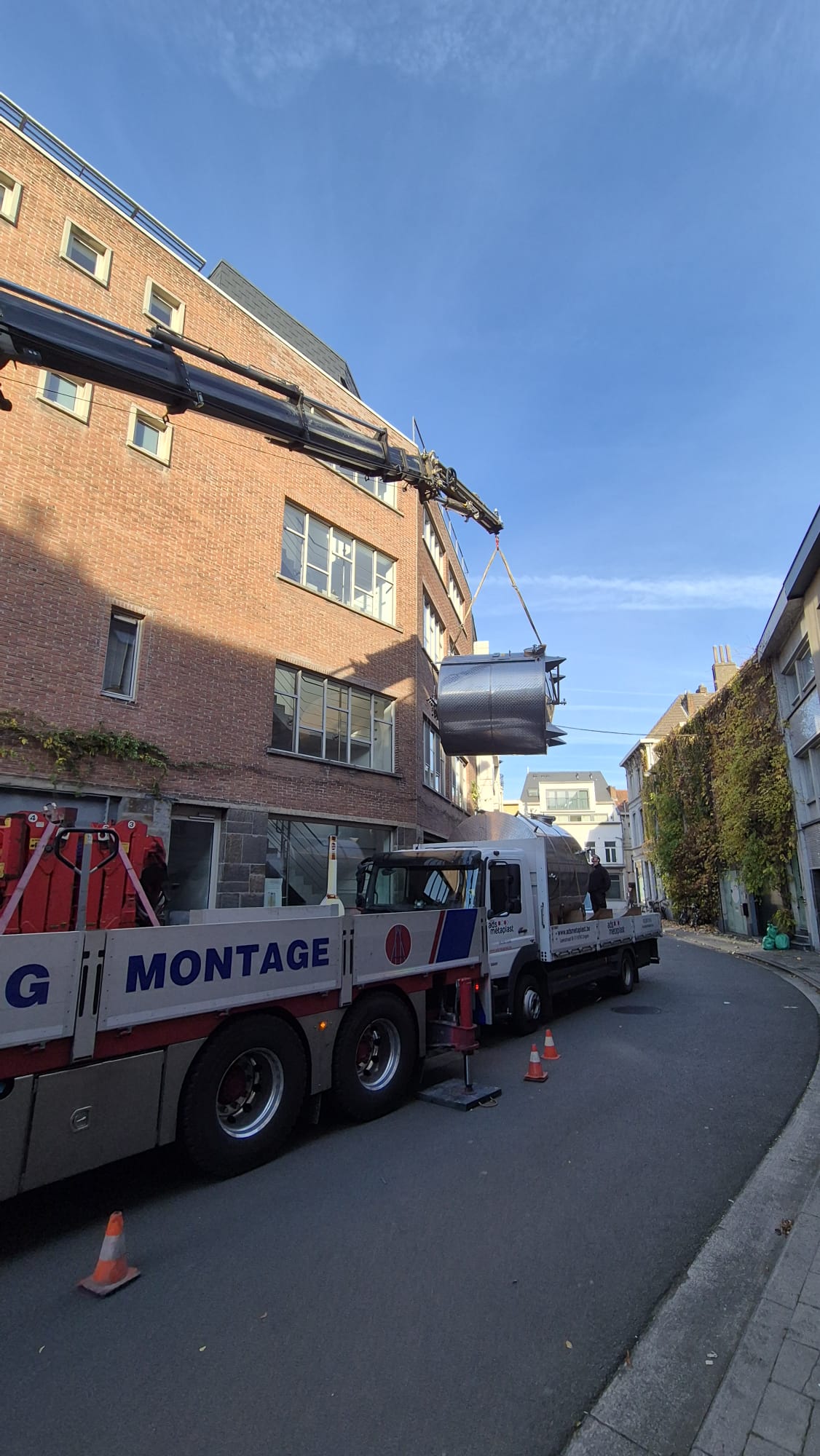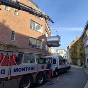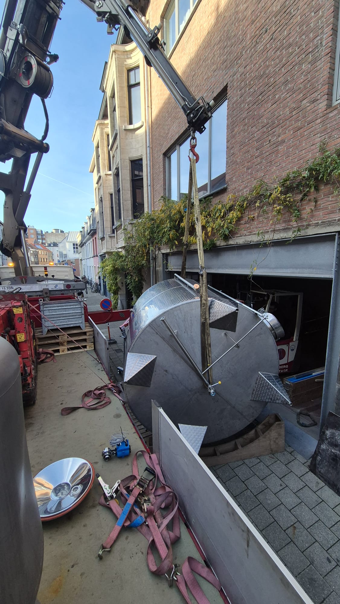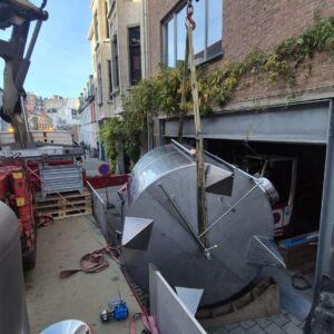 Voor een kleine brouwerij in Gent voerde Hemberg Montage een verhuis van een industriële installatie uit. Het ging om het hijsen en verplaatsen verschillende tanks. De werken werden uitgevoerd in een stedelijke omgeving met beperkte ruimte.